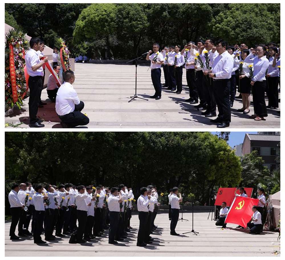 在云南省人民英雄纪念碑前,全体人员向革命烈士默哀致敬,在集团党委书记、董事长张文学的带领下重温入党誓词,铭记入党初心,铭刻党员使命。接着,全体人员依次向人民英雄纪念碑献花,表达对人民英雄诚挚的敬意和深深的缅怀。