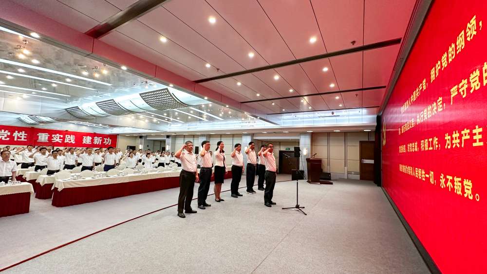 活动在铿锵有力的宣誓声中拉开帷幕。与会领导干部和党员代表面向党旗、举起右手,重温入党誓词。“我志愿加入中国共产党,拥护党的纲领……”铮铮誓言,字字句句透着坚定与执着,通过重温入党誓词,激励广大党员干部为推动集团可持续高质量发展矢志奋斗、砥砺前行。