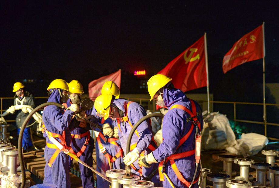 “先锋队”主动承担临时突击任务,哪里有困难就冲向哪里,25吨触媒装填、378根炉管清刷、满是油污的油箱清洗、50米高塔的爬高钻底,不分时刻、不分地点、不问难度、不讲条件,只要需要,就勇敢地上,全力扛好“百日红”传承旗帜,扛稳“保障粮食安全”使命任务。