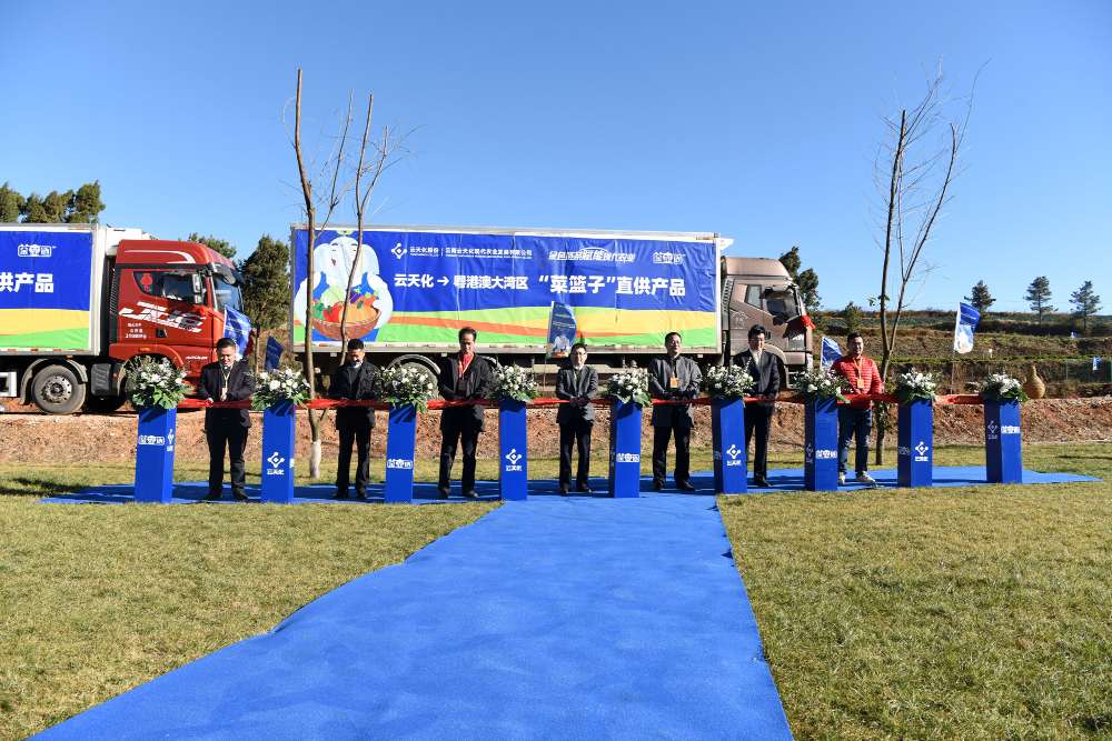 当日上午,随着与会领导在倒数声中共同剪下彩条,印有“云天化→粤港澳大湾区直供产品”字样的运输车辆缓缓开动,满载50吨“云菜”的首发冷链车将从昆明出发,驶向1300公里以外的粤港澳大湾区。