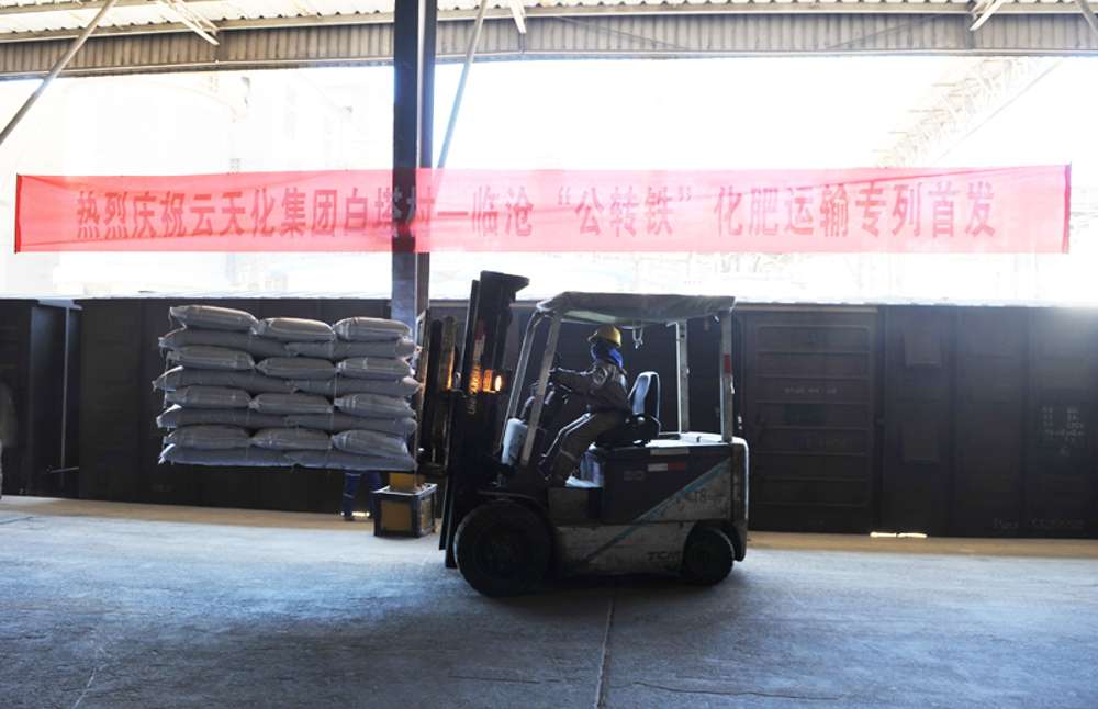 2021年1月5日14时30分许,随着一声清脆的汽笛,一列满载近1300吨的化肥火车专列从海口磷业白塔村车站缓缓驶出,沿着刚开通的“大临”铁路线一路向前,标志着云天化、海口磷业化肥至临沧的首趟专列正式开通,为云天化、海口磷业肥料产品出口南亚东南亚国家又增添了一条陆上运输“大动脉”。