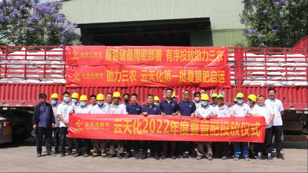 2022年6月1日,云天化首批国家“夏管肥”储备化肥在云南和内蒙市场正式投放。“夏管肥”储备的投放是在公司圆满完成“春耕肥”储备投放后,为助力“三农”的又一有力举措,同时也是做好今年夏收、夏种、夏管工作的开端。