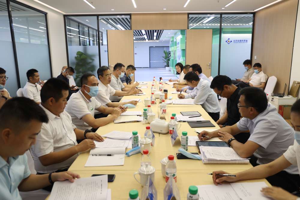 考察人员随后前往会议室展开详细交流。粤港澳大湾区“菜篮子”工作办公室副主任陈首钢详细介绍了粤港澳大湾区“菜篮子”工程的建设思路和三年建设成效。蔡伟科同志阐述了工程建设的下一步发展方向和建成后的深远意义。昆明市考察团对粤港澳大湾区“菜篮子”工程项目进行深入了解,并交流工作经验。