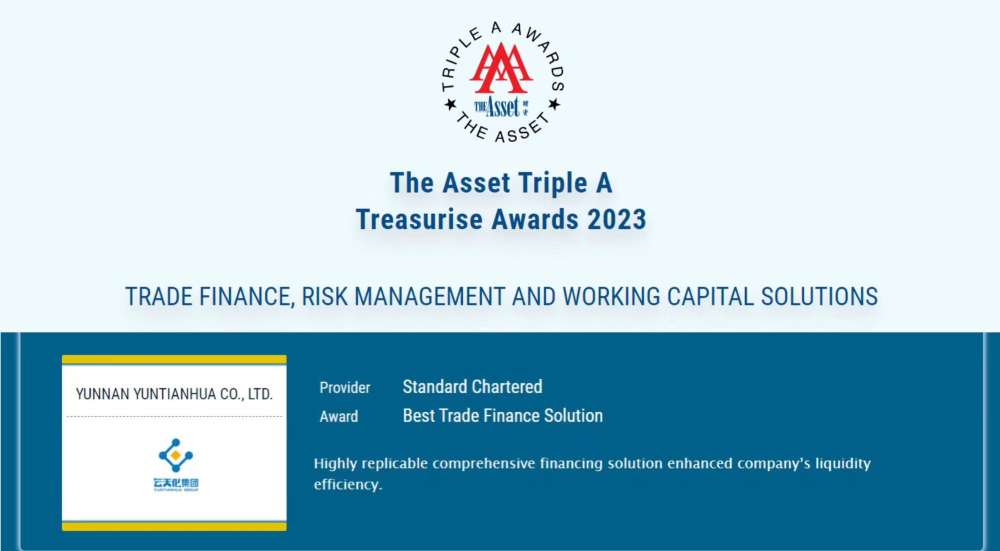 云天化2023年度“财资奖”获奖链接://www.theasset.com/awards/treasury-23-trade-finance-risk-management