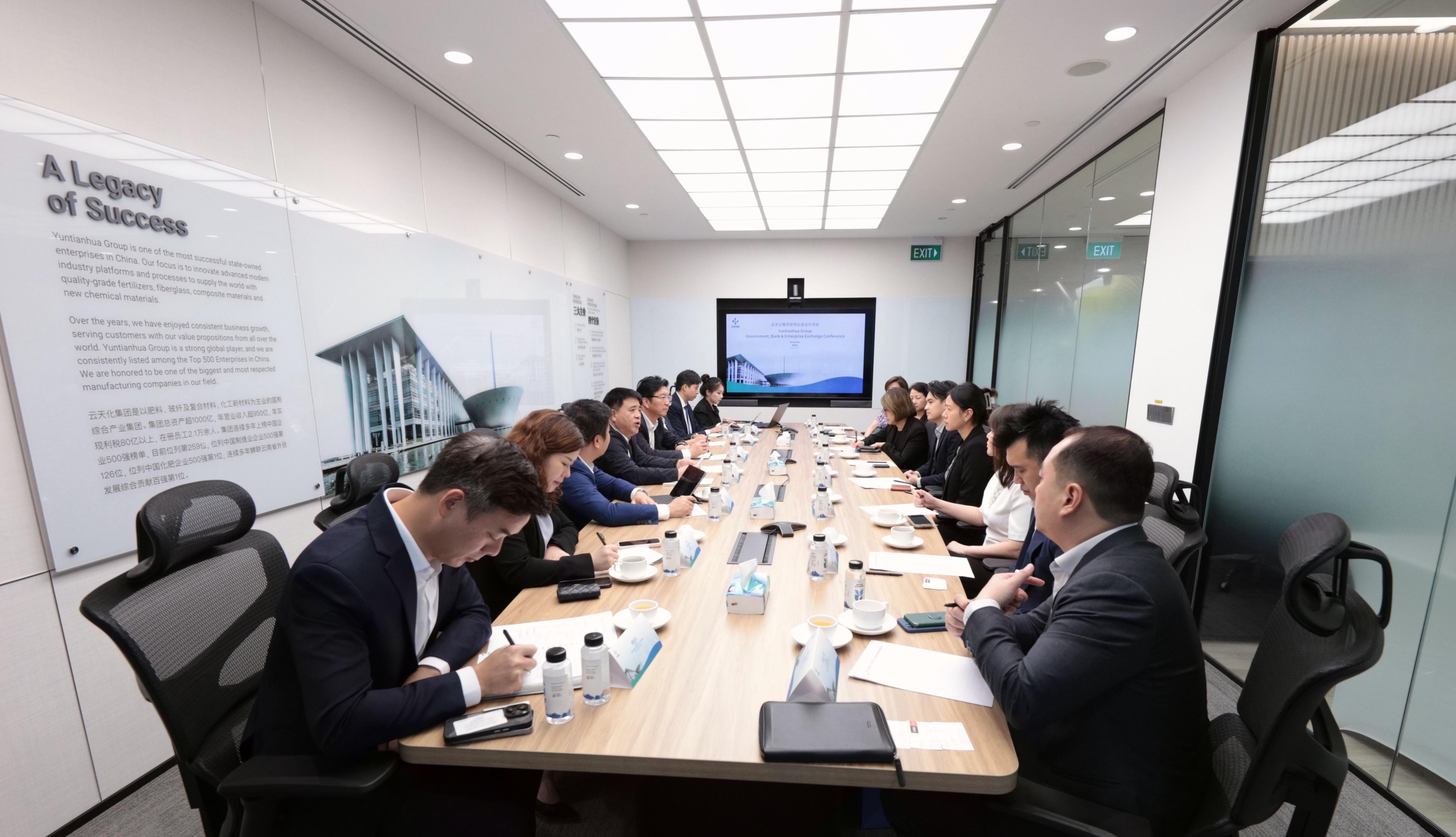 5月20日,刘和兴在正式落地运营的云天化天际通商(新加坡)有限公司(简称云天化天际通商)召开政银企座谈交流会,与新加坡企业发展局贸易司副司长Ms Kaiyin Li、渣打银行新加坡分行企业及投资银行业务部执行总监申畅、东亚银行有限公司新加坡分行行长胡雅月、新加坡最大的本土银行集团——星展银行执行董事Marie Cheong、新加坡历史最悠久的本土银行——华侨银行集团董事总经理沈兰进行会谈,了解新加坡政府对中资企业的政策支持和资源配置等情况,探讨国际化融资、现金管理、国际结算、供应链金融等跨境金融服务方案,为云天化在海外的发展奠定基础。